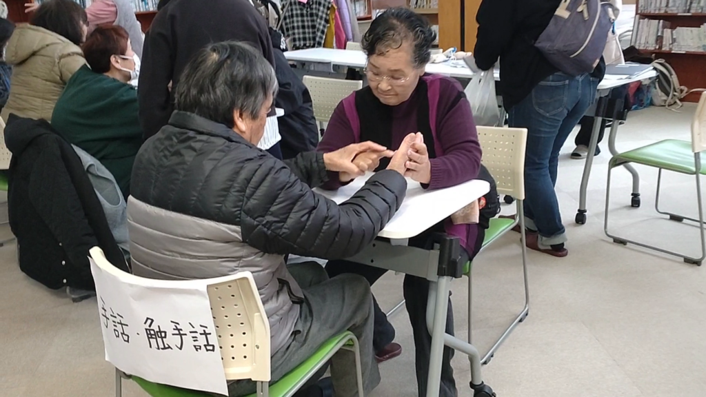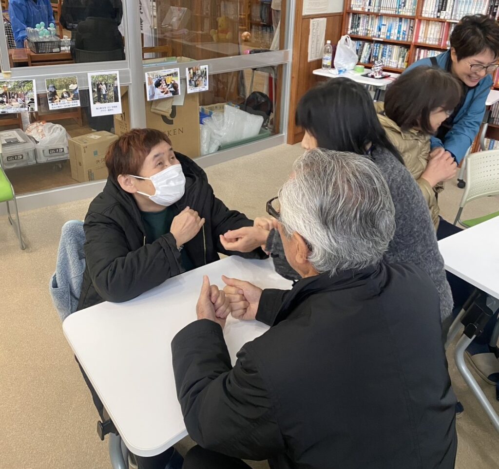 飯野高校の生徒さんたちを含め、たくさんの方にご来場いただき、盲ろう者の講演に耳を傾け、さまざまな体験に挑戦しながら、盲ろう者のことや、盲ろう者とのコミュニケーション方法について理解していただくきっかけになったのではと思います。