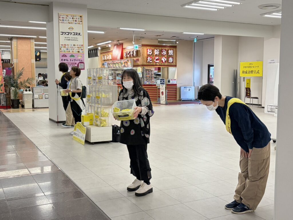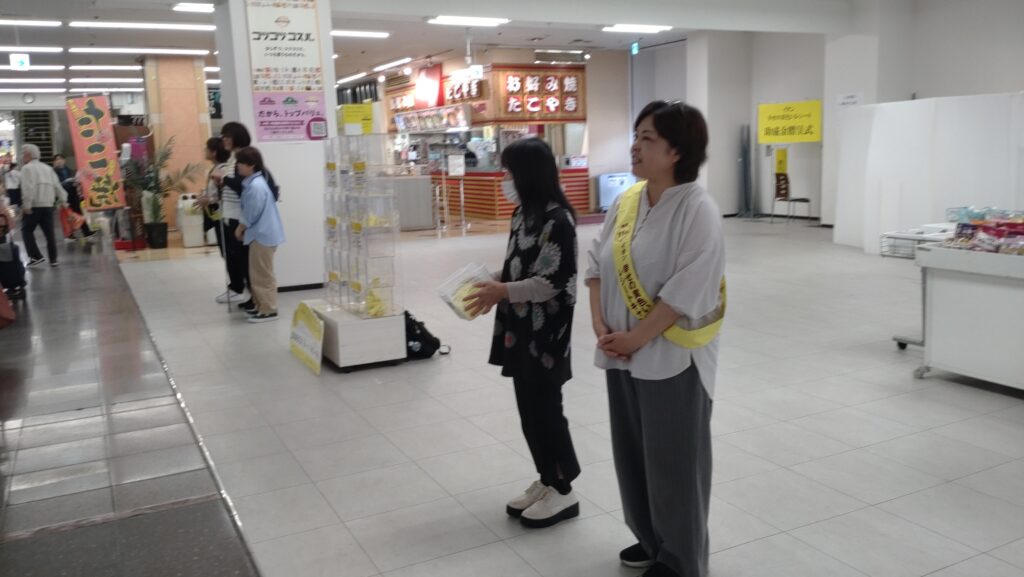 私たち友の会は、いつも通りイオン南宮崎店さんで声掛けに立たせていただきました。